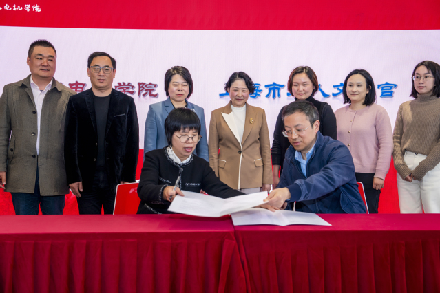 4月1日上午,上海电机学院与上海市工人文化宫在学校临港校区举行合作交流会议,会上签署了“大思政课”合作共建协议,开启了协同育人的新篇章。上海市工人文化宫主任、党委副书记高越及各部门负责人,学校党委副书记、副院长李晓军及相关职能部门负责人、马克思主义学院教师代表等参加会议。会议由党委宣传部部长朱成实主持。