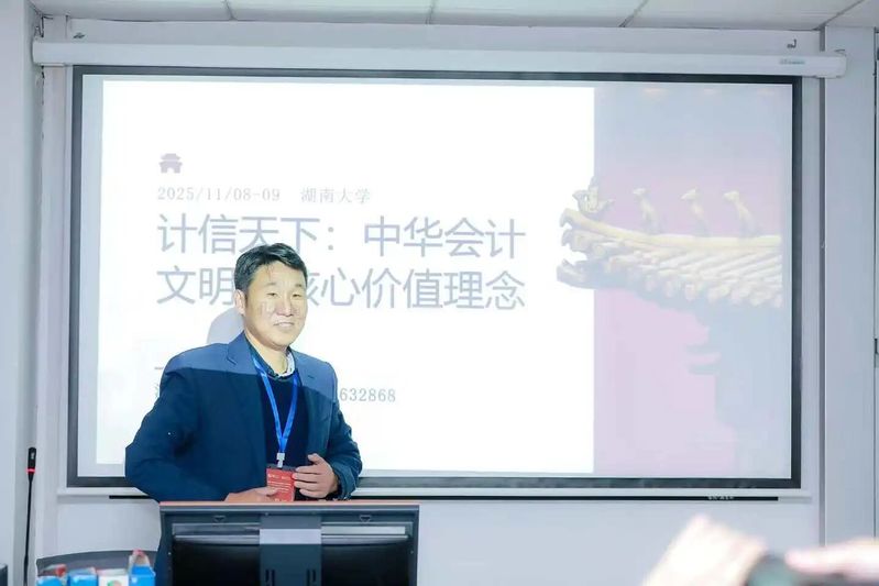 11月7日至9日,中国会计学会会计史专业委员会第十三届学术年会在湖南大学举行。财政部会计司一级巡视员、中国会计学会秘书长刘光忠,湖南大学党委副书记、纪委书记曹升元,著名会计史学家、中南财经政法大学郭道扬教授等出席开幕式并致辞。湖南大学工商管理学院院长杨智主持。本次会议是以“历史文化视域下的中国自主会计知识体系构建”为主题。17位专家学者的主题报告分别从自主会计知识体系建设、人工智能时代会计发展、会计史研究、优秀传统文化与会计等维度分享了前沿思考。50余位学者在6个平行论坛上分别研讨了红色会计、商帮会计、会计教育史、中西簿记比较、会计文化传承、会计史料挖掘等。上海电机学院马克思主义学院孔晨旭教授赴会并在分论坛作“中华会计文明的核心价值理念”专题发言。
